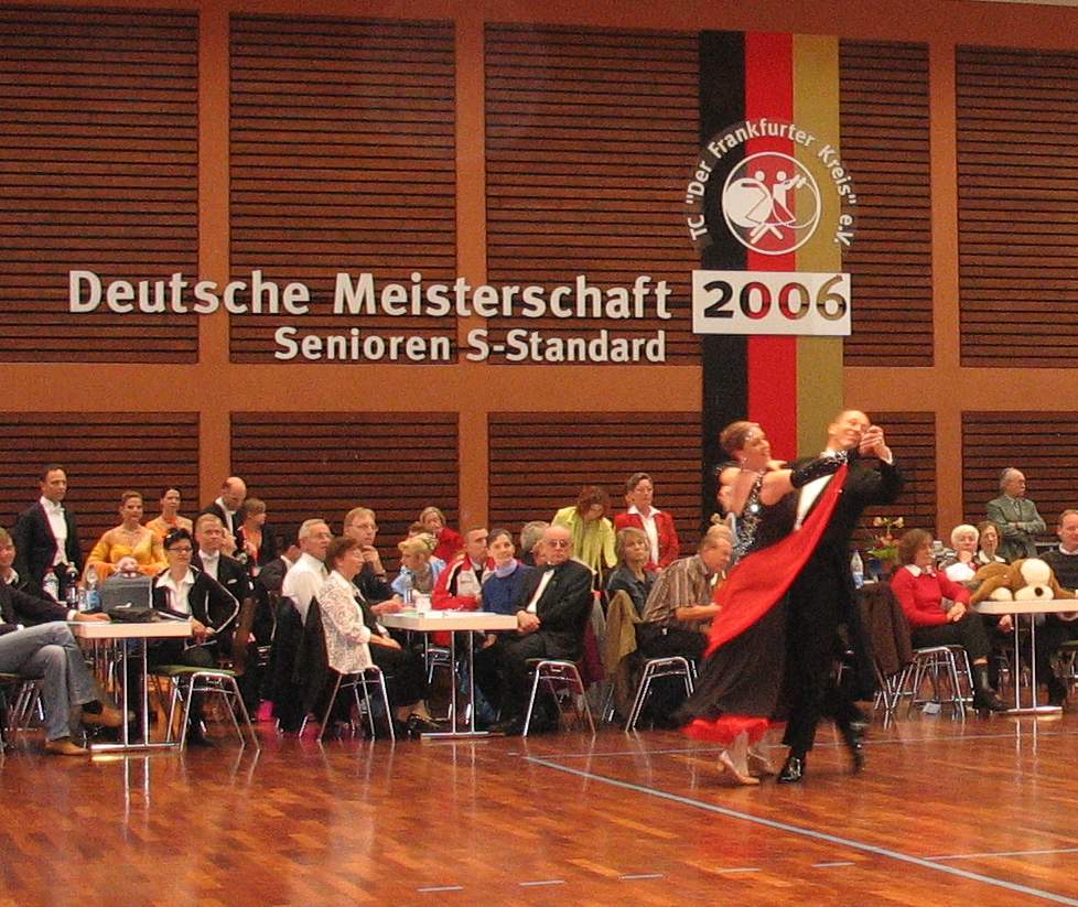 Im Jahr 2000 war es dann soweit. Tina und Peter bestritten Ihr erstes Turnier in der Senioren I D - Klasse in Frankfurt bei "Hessen tanzt". Sie belegten unter 30 in dieser Klasse angetretenen Paaren einen 15. Platz. Dieses war der Startschuss zu einem tollen Durchmarsch durch die Senioren I D, C und B - Klassen, der seine vorläufige Krönung am 15. Juni 2002 in Halle an der Saale mit dem Aufstieg in die Senioren I A-Klasse fand. Auf dem Weg dahin bestritten die Beiden insgesamt 41 Turniere in Deutschland, in der Schweiz und in Österreich. Sie ertanzten sich dabei 20x einen Platz auf dem Treppchen. Unter anderem waren sie dritter bei den Bayerischen Meisterschaften der D-Klasse, Vizemeister in der C-Klasse und Endrundenteilnehmer bei den Meisterschaften der B-Klasse. Als das Paar zum Turnier in Halle anreiste, war der Aufstieg in die A-Klasse schon in greifbarer Nähe. Trotz oder gerade wegen der bei jedem Turnier aufkeimenden Nervosität, die insbesondere bei dieser Veranstaltung noch größer war, schafften Tina & Peter mit einem starken dritten Platz von 22 Paaren den Aufstieg.